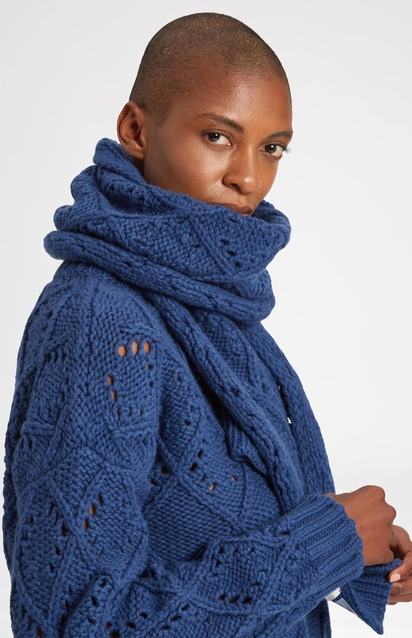 Allover Diamond Eyelet Stitch Scarf In Storm Blue Melange
