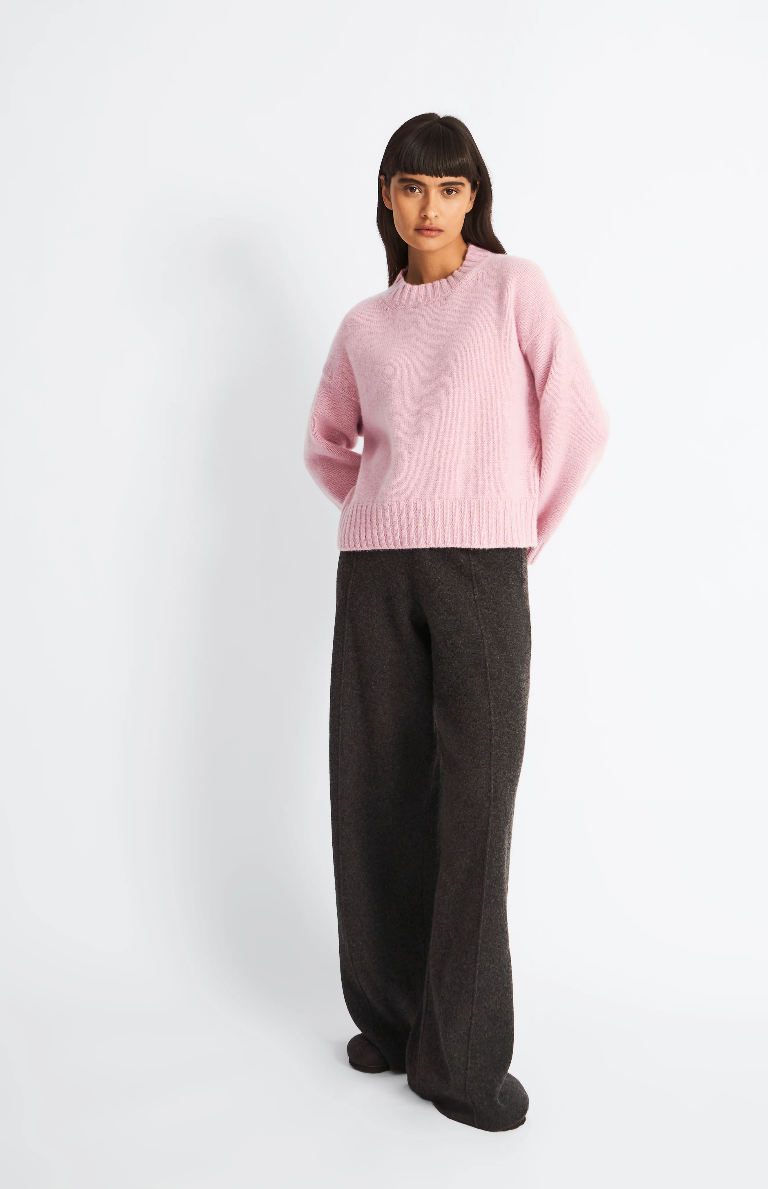 Made in Scotland from luxury cashmere, this extremely soft, cool and chunky cropped jumper in Dusty Pink features a round neck and modern ribbed trims.Our cosy Cashmere range is a perennial favourite.
